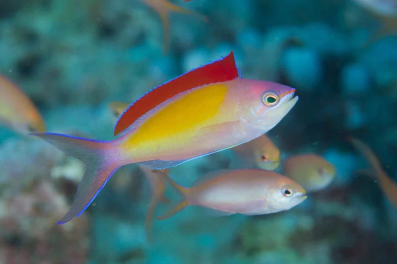 – Todas as espécies de Anthias compartilham a característica de serem hermafroditas. Se um macho dominante perece, a maior fêmea do grupo geralmente se transforma para tomar seu lugar.