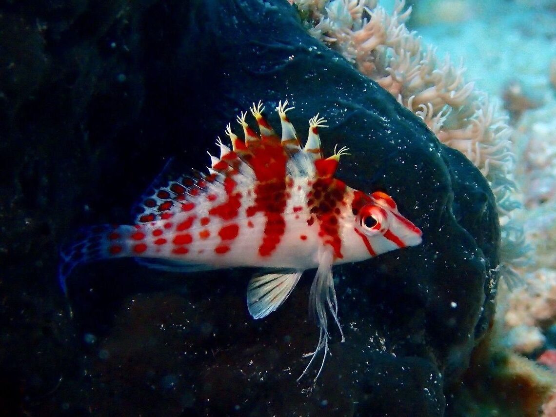 Os Hawkfish Falco são peixes ativos e territoriais, frequentemente observados perchedo em rochas e corais, de onde caçam suas presas. Eles têm uma tendência de “vigiar” o aquário, o que pode ser interpretado como uma forma de se estabelecer em seu território. Esses peixes também podem subir no topo dos corais ou outras estruturas elevadas para melhorar sua visão.
